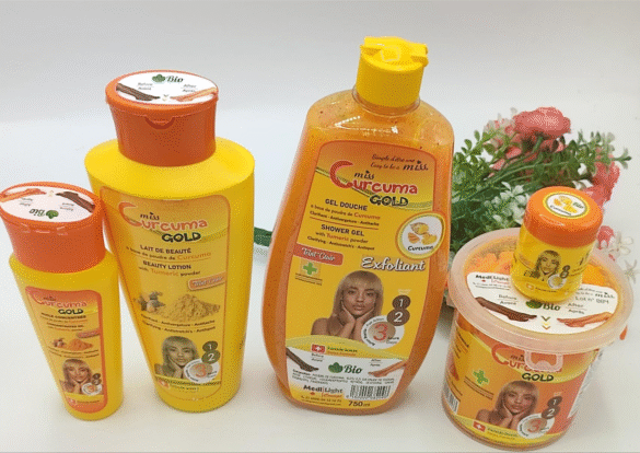 Produit Recommandé: Gamme Complète Soins Curcuma Bio – Inclut un savon et une huile exfoliants.