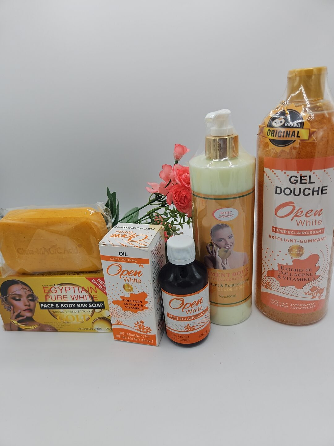 La Gamme corporelle Open White Piment Doux est un coffret complet conçu pour nourrir, hydrater et illuminer votre peau au quotidien. Dès le premier usage, vous ressentirez une douceur exceptionnelle grâce au lait corporel Piment Doux 500ml, enrichi en beurre de karité, qui hydrate et protège intensément. Le gel douche 1 litre nettoie en profondeur tout en préservant l’équilibre naturel de la peau, tandis que l’huile corporelle 125ml apporte une nutrition prolongée et laisse votre peau souple et satinée. Enfin, le savon Purec Egyptian Gold OR 250g complète votre rituel beauté en laissant votre peau douce et délicatement parfumée.