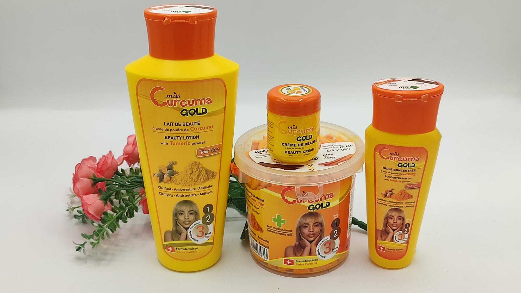 La gamme curcuma gold Miss Curcuma Gold révolutionne entièrement votre routine beauté avec ce kit complet 4-en-1 exceptionnellement formulé. Effectivement, cette collection premium associe harmonieusement savon granulé, lait corporel, huile précieuse et crème visage pour une transformation cutanée complète et durable.