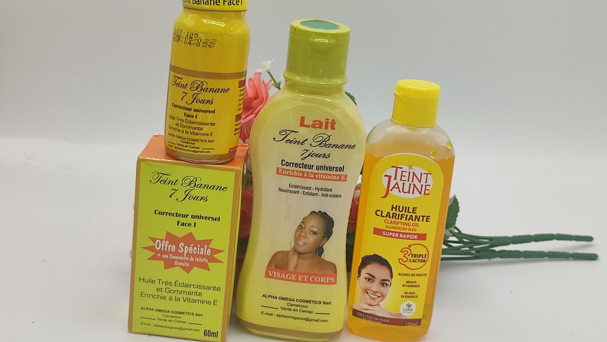 teint jaune parfait – Voilà ce que vous obtenez avec la Mini Gamme Teint Banane, une routine complète spécialement conçue pour révéler un teint doré, lumineux et uniforme. En effet, grâce à un trio puissant composé d’un lait corporel 250ml, d’un sérum éclaircissant Phase 1, et d’une huile correctrice 125ml, cette gamme agit en profondeur pour corriger les taches, unifier le teint et hydrater intensément la peau. Par conséquent, chaque produit est formulé avec des ingrédients naturels et des actifs éclaircissants comme la glutathion, l’arbutine et la vitamine C. Ainsi, vous obtenez des résultats visibles dès les premières semaines.
